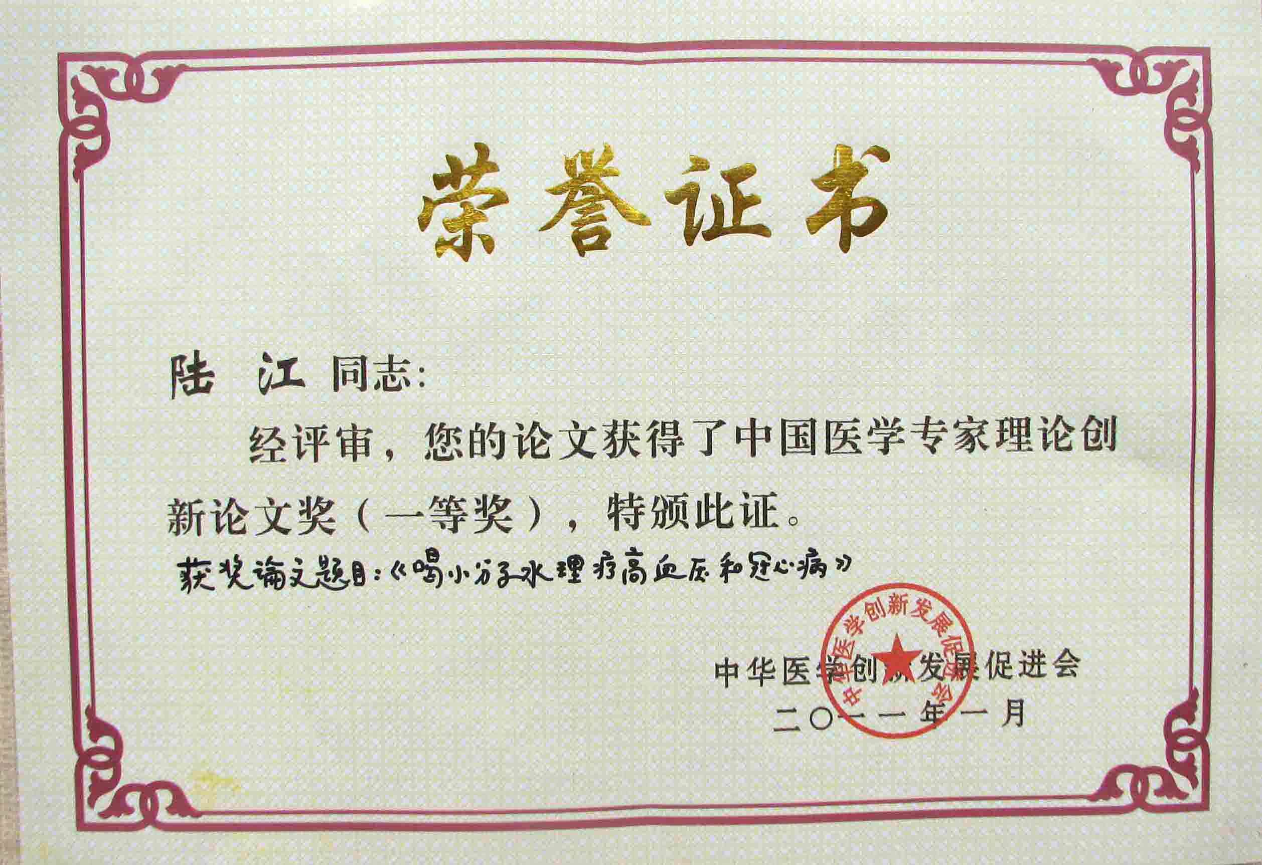 人類(lèi)幾千年來(lái)患以上病癥需終生服藥,幾十年也不能治愈。可是我國(guó)南寧的高級(jí)工程師陸 江,于1990年想根治高血壓,研究發(fā)明了離子水瓶,處理出微小分子團(tuán)水供飲用,經(jīng)過(guò)醫(yī)院臨床試用和專(zhuān)家鑒定,1999年獲中國(guó)發(fā)明專(zhuān)利權(quán),產(chǎn)品于2000年投放市場(chǎng)后一直跟蹤調(diào)查,據(jù)全國(guó)各地用戶(hù)反饋:祛除了高低血壓、糖尿病和冠心病,并使前列腺增生、咽喉炎、鼻竇炎、慢性氣管炎、支氣管炎、矽肺病、哮喘、慢性胃炎、腸炎、慢性膽囊炎、慢性腎炎、腎衰、膀胱炎、便秘、痔瘡、風(fēng)濕性關(guān)節(jié)炎和濕疹皮炎及中風(fēng)后遺癥等病癥不藥而愈。為什么喝微小水能治20多種病?陸 江從1991年德國(guó)科學(xué)家發(fā)現(xiàn)細(xì)胞膜水通道僅為2納米獲得啟發(fā),認(rèn)為多種器官患病是因細(xì)胞脫水,不能正常代謝和分裂增殖,才使器官細(xì)胞減少致衰弱萎縮而形成細(xì)胞缺水性病癥。22年來(lái)的實(shí)踐有力地支持了“細(xì)胞脫水致病”這一重要論點(diǎn),表明喝微小水可滿足細(xì)胞的生理需求,補(bǔ)水就能祛病,是生命科學(xué)新亮點(diǎn)。
